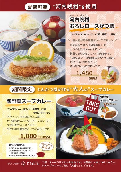 毎年好評の『河内晩柑おろしロースかつ膳』🍊もおすすめです
