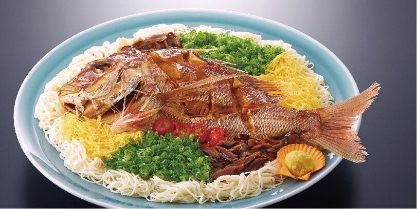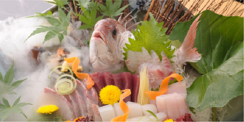 愛媛を代表する郷土料理「宇和島鯛めし」前菜も鯛にこだわった看板料理です。