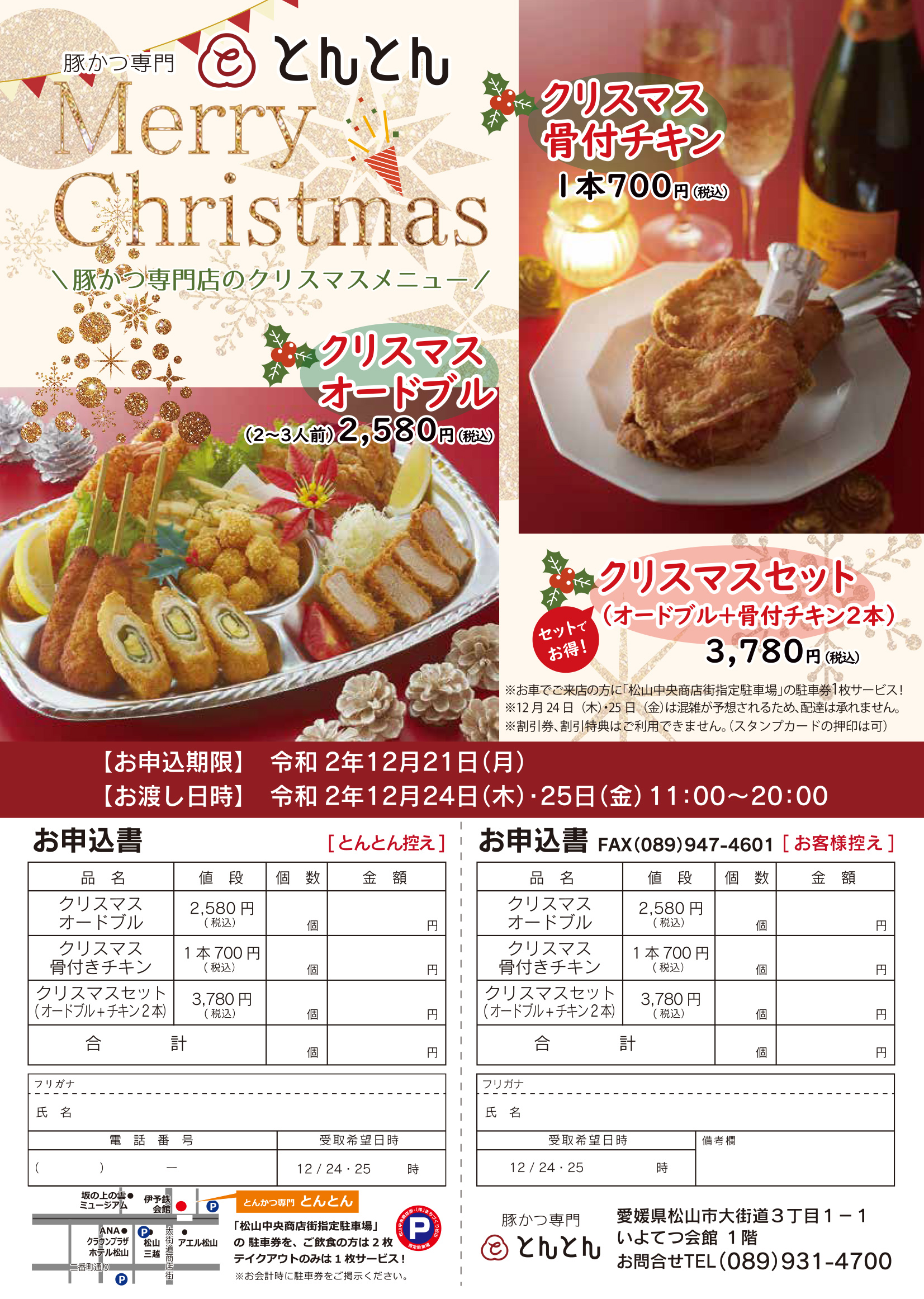 【とんとん】Xmasオードブル・チキンのお申し込み受付を開始!