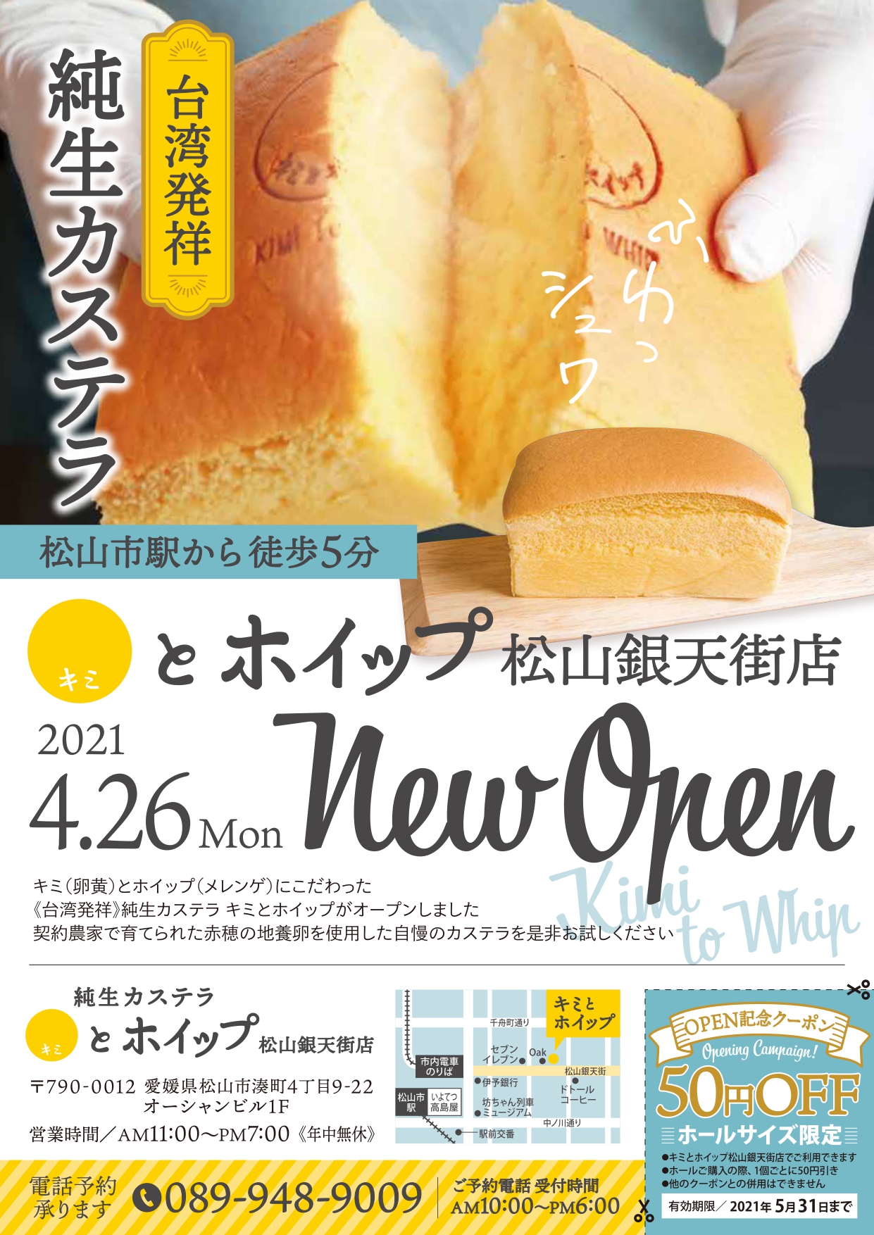【キミとホイップ】松山銀天街に「台湾発祥」純生カステラのお店がOPEN!
