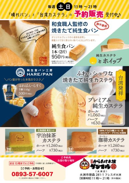 【ゲンマル大洲店】晴れパン・台湾カステラの予約販売中♪