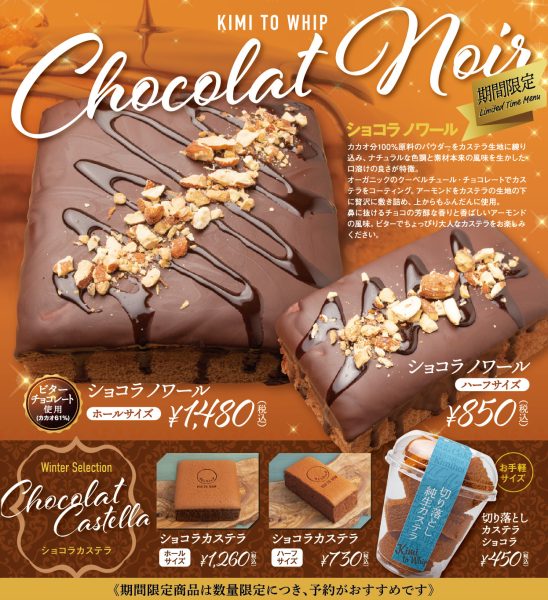 オーガニックのクーベルチュール・チョコレートでカステラをコーティング。 チョコの芳醇な香りと香ばしいアーモンドの風味がリッチな味わいです。 ビターな甘さが大人にも大人気! 手土産やパーティーの差し入れにぴったりの一品です🥰 2月末までの期間限定商品です🤞