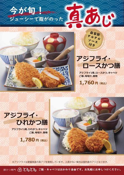 【豚かつ専門とんとん】今が旬!「アジフライ」今年も始ります!
