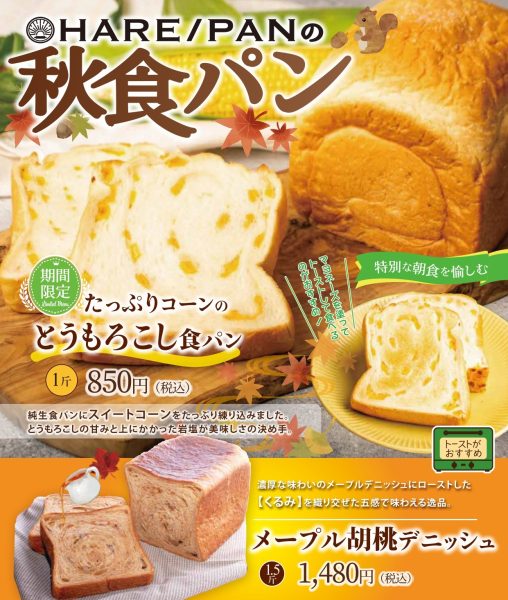 【HARE/PAN朝生田店】2023秋の食パン 新商品のご案内