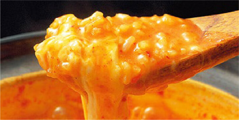 赤から出汁を使用、出汁の辛さを卵が中和し