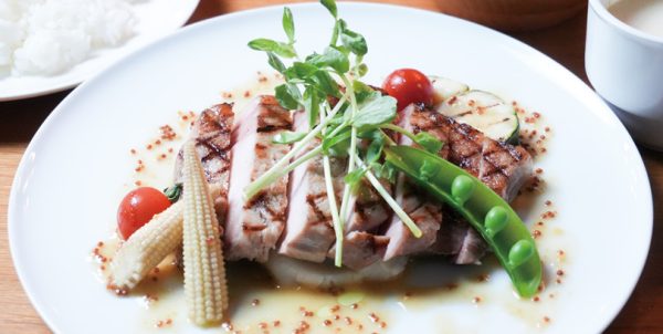 麦を主体にした飼料で育った健康な三元豚を豪快にグリル。