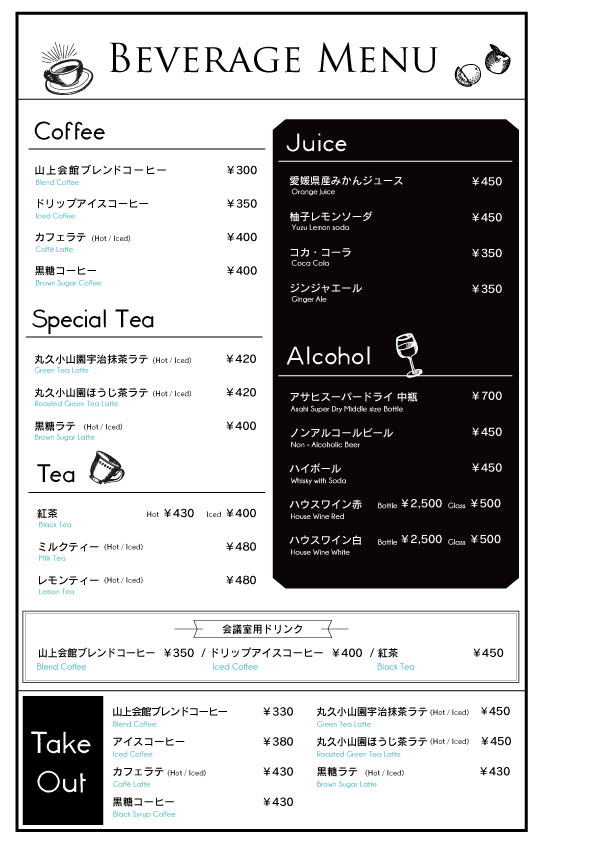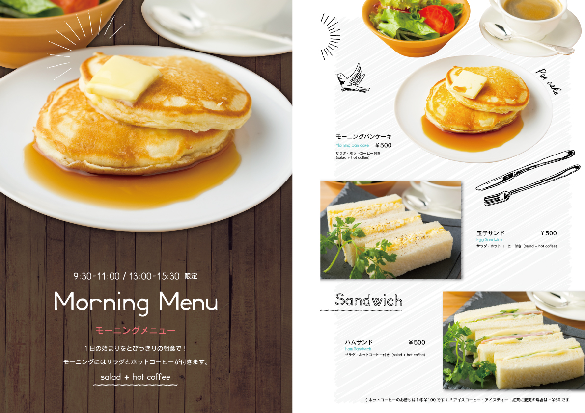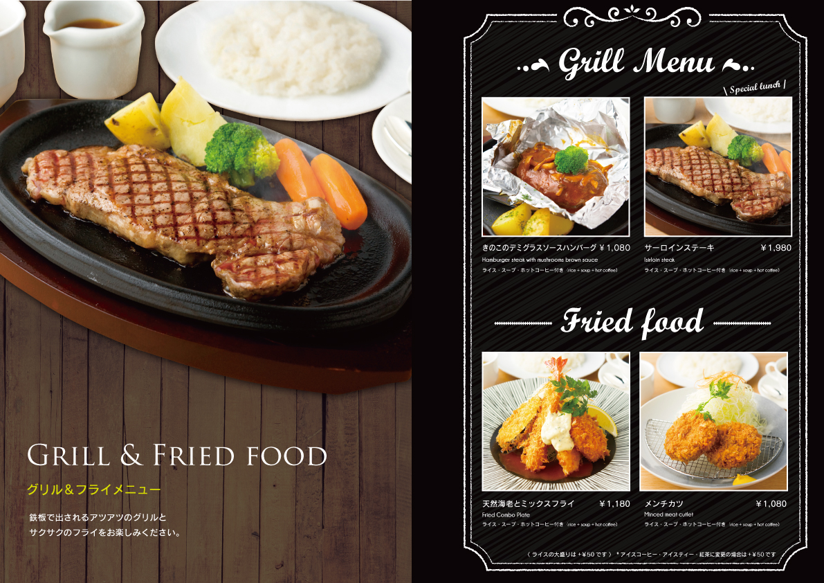 - 当店ではカレー・ハンバーグなどのカフェメニューをはじめ、ドリンク・ケーキメニューを取り揃えております。